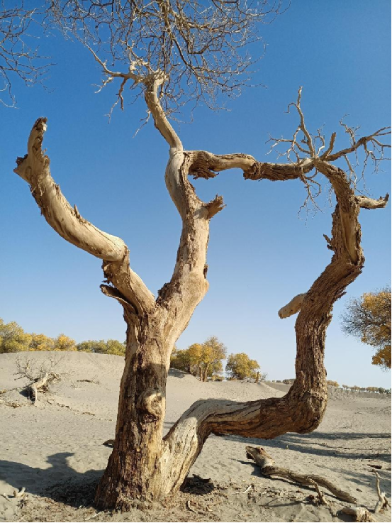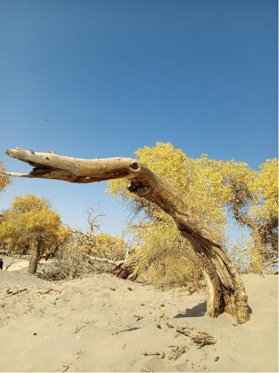 胡楊,又稱胡桐、英雄樹、異葉胡楊、異葉楊、水桐、三葉樹,是生長(zhǎng)在沙漠中的樹種,它耐寒、耐旱、耐鹽堿、抗風(fēng)沙,有很強(qiáng)的生命力。