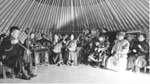 草原上的“紅色文藝輕騎兵”——烏蘭牧騎隊員在為牧民表演文藝節(jié)目。