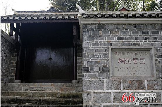 桐埜書屋為近年遺址上重建的一棟依山而建的穿斗木質(zhì)明清建筑。門頭上懸掛著貴州當(dāng)代著名學(xué)者、書法家戴明賢老先生用蒼勁自然的行書題寫的“桐埜書屋”四個(gè)大字匾額。走進(jìn)大門,堂屋的正中央懸掛著這兒曾經(jīng)的主人周起渭和夫人的畫像,令人肅然起敬。
